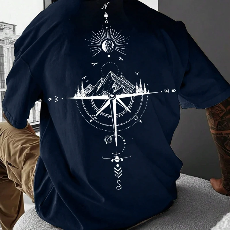 2024 New Summer Men’s T-Shirt 3d Compass Printed Short Sleeve Tees Simple Fashion Male Clothing Loose Oversized T-Shirt For Men