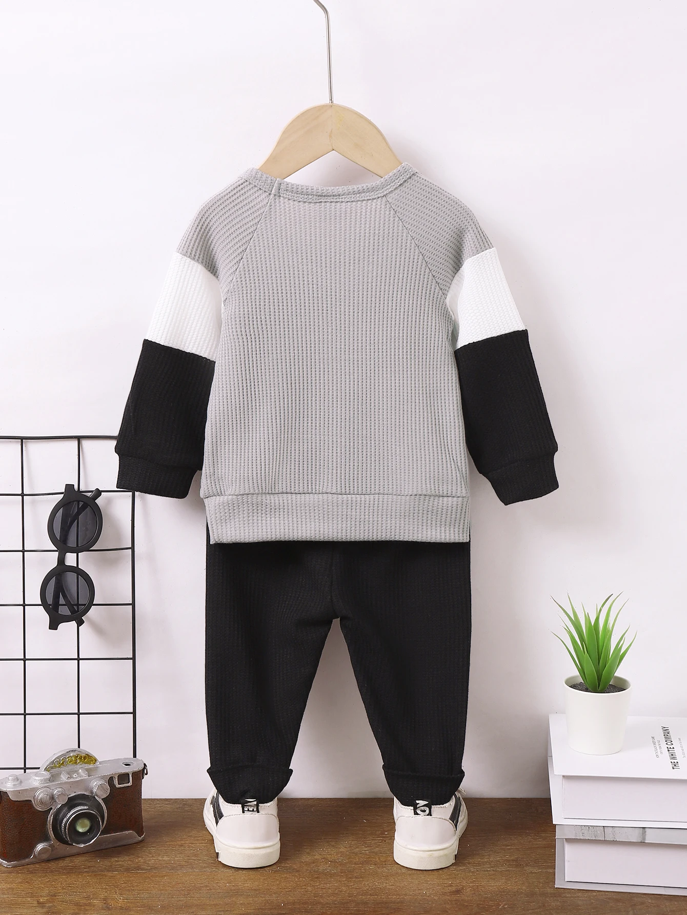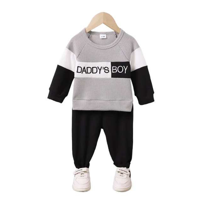 2PCS Kid Boy Clothes Set Patchwork Letter Print Long Sleeve Hoodie with Pants Autumn Fashion Sport Outfit for Children 4-7 Years