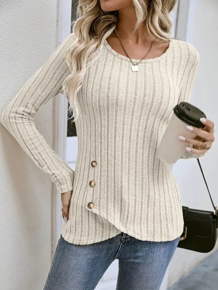 Autumn and winter long sleeved round neck top for women fashionable and casual irregular solid color street style button pull