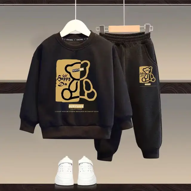 HomeKids Autumn Baby Girls Clothes Set Kid Boy Cartoon Bear Printed Sweatshirt Pullover And Pants 2pcs Suit Children Top Bottom Tracksuit