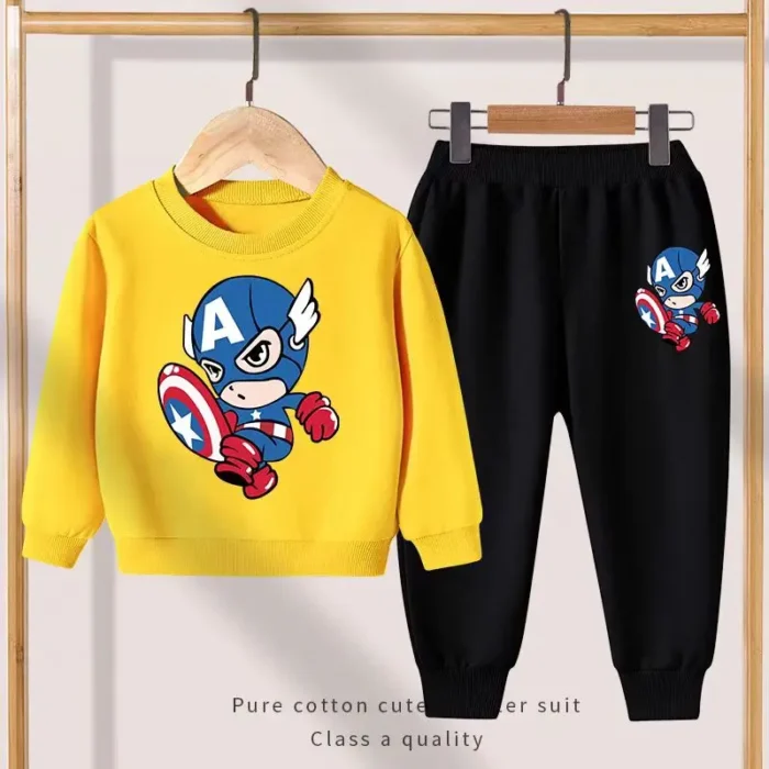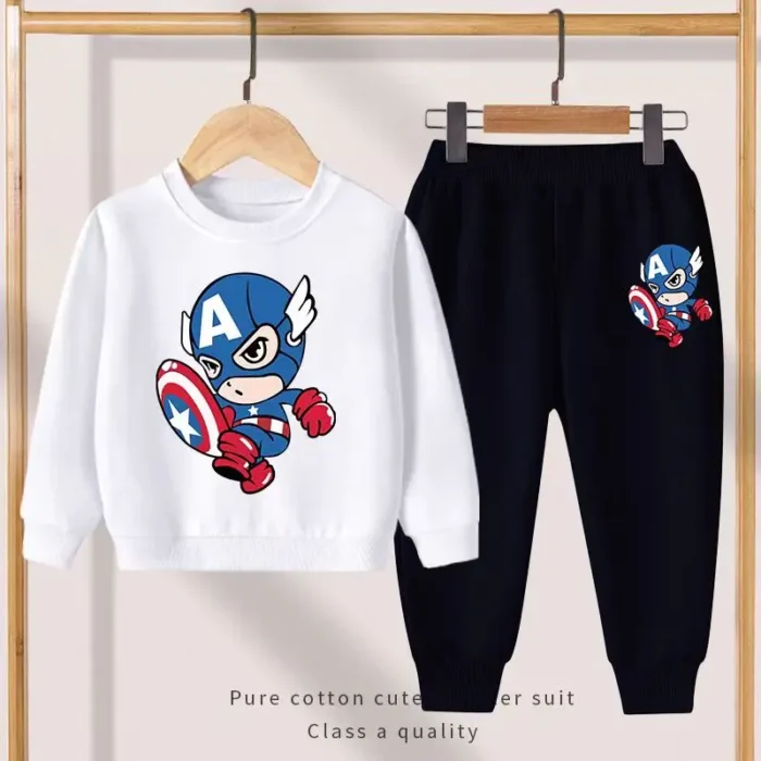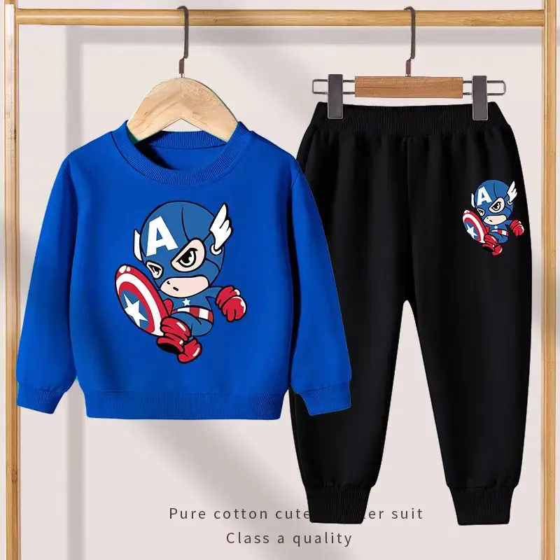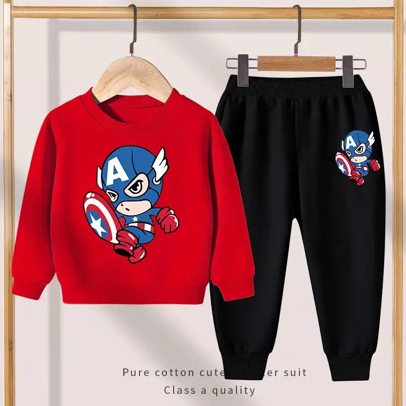 Autumn Children Boy Clothes Set Kid Girls Captain America Printed Sweatshirts Pullover Top And Pants Bottom 2pcs Suit Tracksuits
