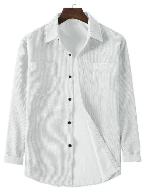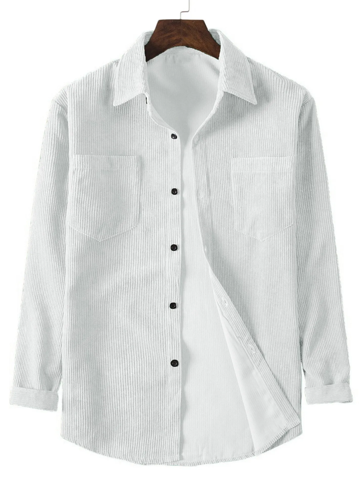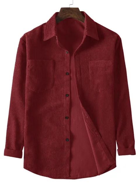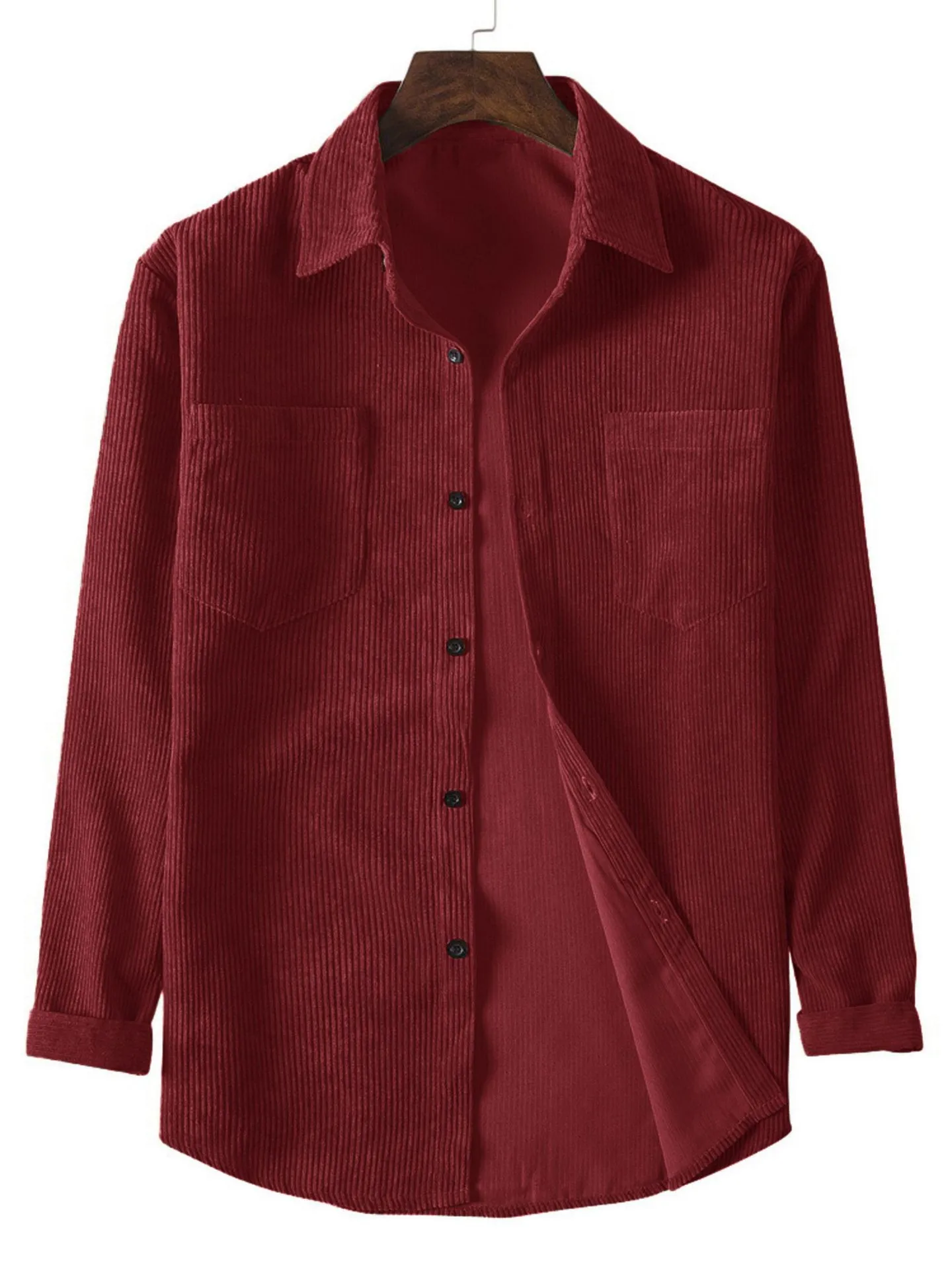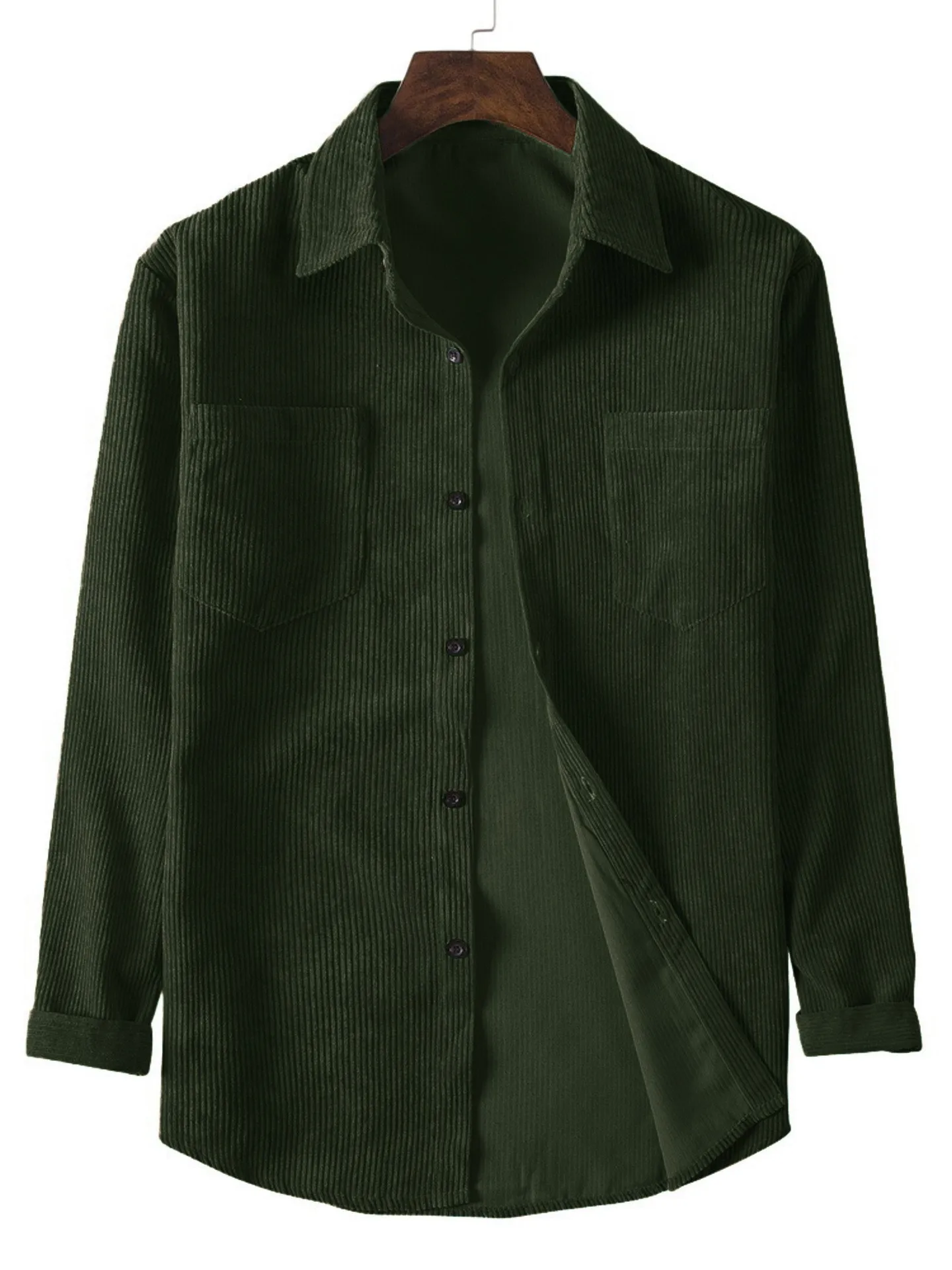 Men’s casual long-sleeved corduroy solid color lapel shirt